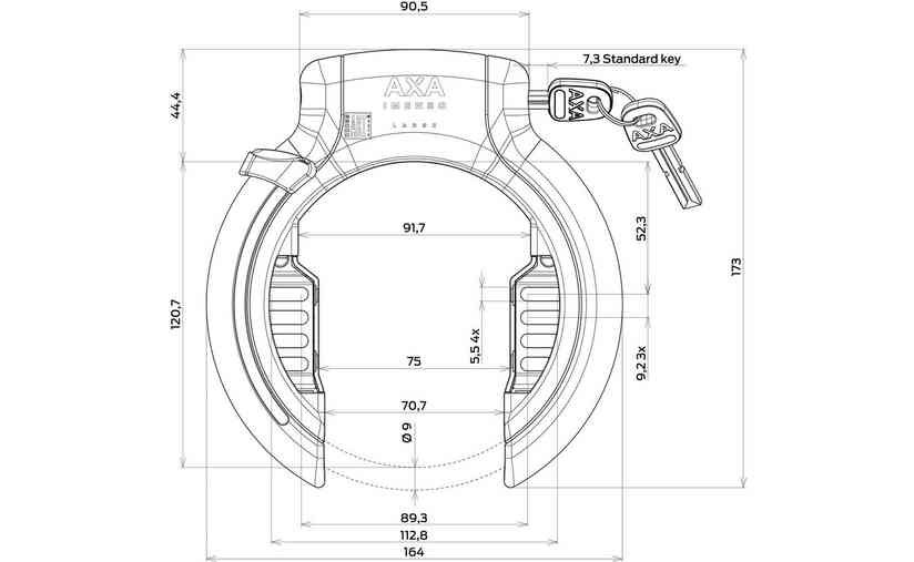 Das Imenso Rahmenschloss bietet optimalen Schutz durch den Anti-Bohr-Zylinder und den gehärteten Stahlbügel. Der ergonomische Bedienknopf biet Ihnen maximalen Komfort. Sollten Sie einmal Ihren Fahrradschlüssel verlieren, ist das kein Problem. Ein zusätzlicher Schlüssel kann über den Online-Schlüsselservice der AXA bestellt werden und wird innerhalb weniger Tage geliefert.