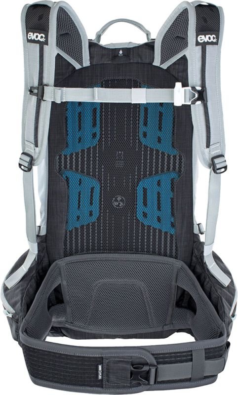 Herzstück des Protektorrucksacksystems ist der extrabreite, ergonomisch geformte Neopren-Hüftgurt mit Klettverschluss und einer großen Heavy-Duty-Schnalle, der die Hauptlast auf die Hüfte überträgt und damit genau am Körperschwerpunkt ansetzt. Die ergonomisch geschnittenen Schultergurte halten den Rucksack dabei komfortabel genau in der vordefinierten Rückenschutzposition. Die für einen Rückenprotektor notwendige Körpernähe wird durch den Einsatz von Air-Mesh-Elementen, EVA-Polstern mit Belüftungslöchern und einem großen Belüftungskanal in der Mitte für maximale Belüftung gewährleistet.
